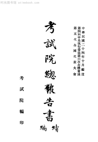 | 网盘路径:/时光图书馆珍藏系列/书籍文件/老图书/《考试院总报告书_续编》电子版合集.db | ||
