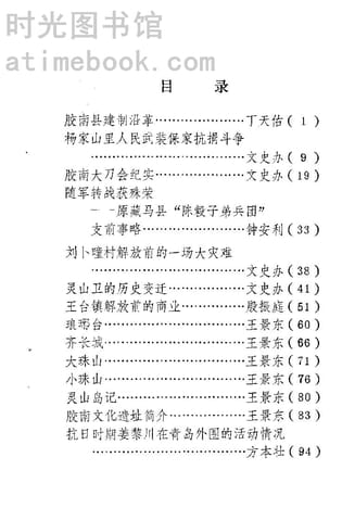 | 网盘路径:/时光图书馆珍藏系列/书籍文件/老图书/《胶南文史资料_第1辑》电子版合集.db | ||