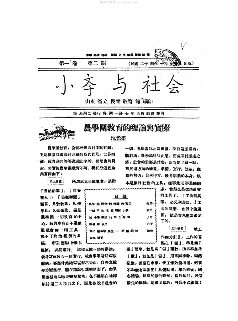 | 网盘路径:/时光图书馆珍藏系列/书籍文件/老杂志、老期刊/民国期刊/山东/《小学与社会》(山东)1935-1937年合集.db | ||