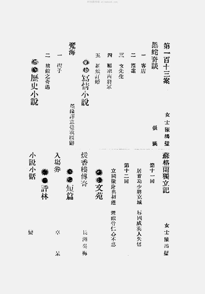 | 网盘路径:/时光图书馆珍藏系列/书籍文件/老杂志、老期刊/民国期刊/上海/《小说林》(上海市)1907-1908年合集.db | ||