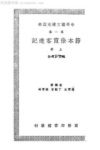 网盘路径:/时光图书馆珍藏系列/书籍文件/老图书/《节本徐霞客游记(上册)》电子版合集.db