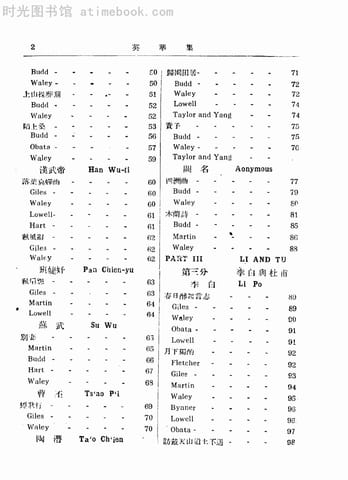 | 网盘路径:/时光图书馆珍藏系列/书籍文件/老图书/《英华集_中诗英译比录》电子版合集.db | ||