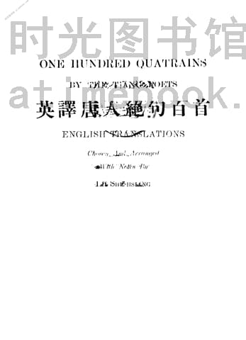 | 网盘路径:/时光图书馆珍藏系列/书籍文件/老图书/《英译唐人绝句百首》电子版合集.db | ||
