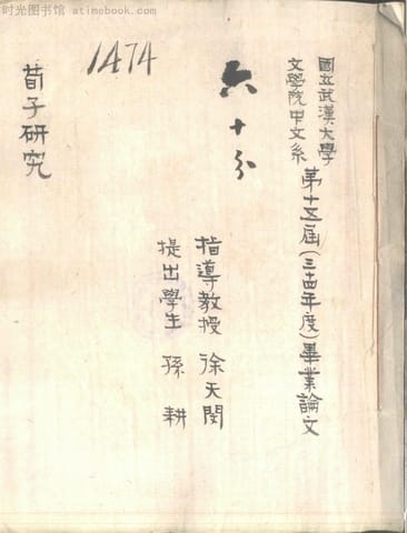 | 网盘路径:/时光图书馆珍藏系列/书籍文件/老图书/《荀子研究》电子版合集.db | ||
