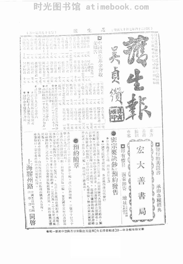 | 网盘路径:/时光图书馆珍藏系列/书籍文件/老报纸/上海/《护生报》(上海)1935-1936年合集.db | ||