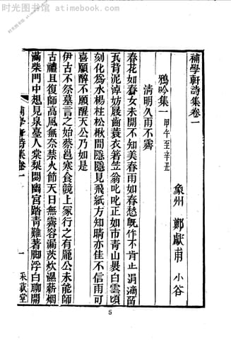 | 网盘路径:/时光图书馆珍藏系列/书籍文件/老图书/《补学轩诗集》电子版合集.db | ||