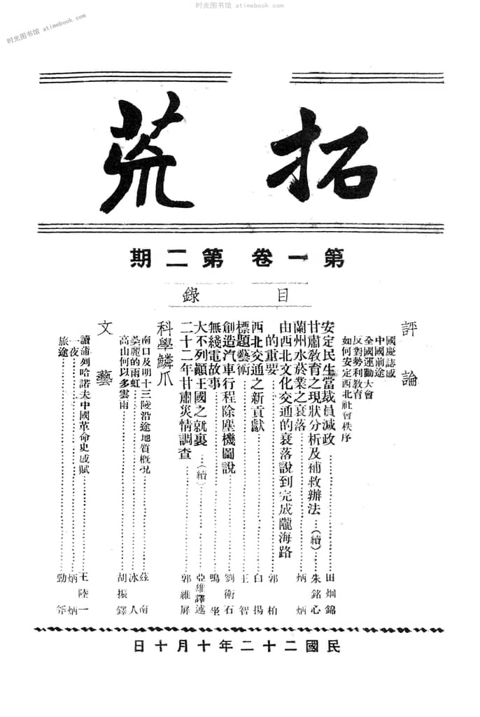 网盘路径:/时光图书馆珍藏系列/书籍文件/老杂志、老期刊/民国期刊/南京/《拓荒》(南京)1933-1935年合集.db