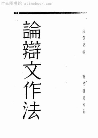 | 网盘路径:/时光图书馆珍藏系列/书籍文件/老图书/《论辩文作法》电子版合集.db | ||