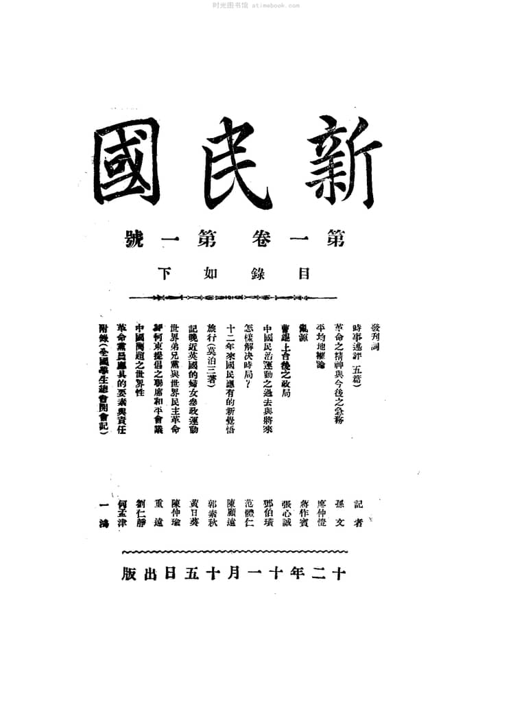 | 网盘路径:/时光图书馆珍藏系列/书籍文件/老杂志、老期刊/民国期刊/北京/《新民国》(北京)1923-1925年合集.db | ||