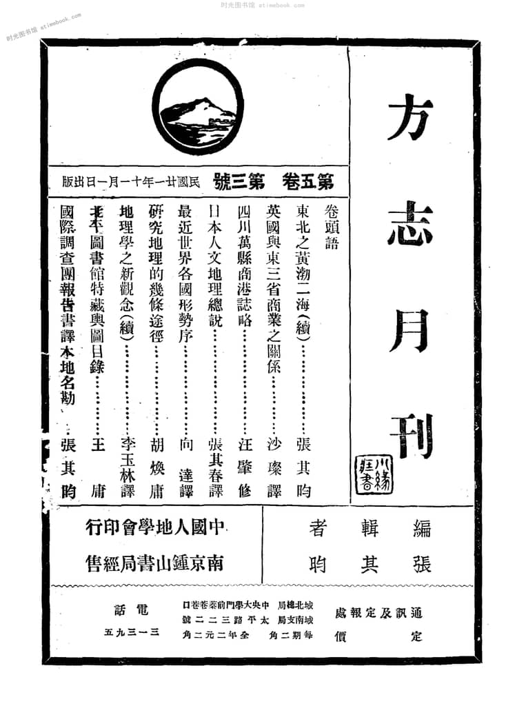 | 网盘路径:/时光图书馆珍藏系列/书籍文件/老杂志、老期刊/民国期刊/南京/《方志月刊》(南京)1932-1936年合集.db | ||