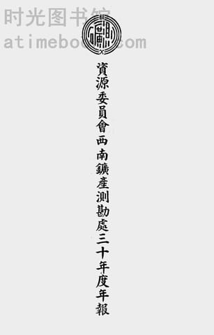 | 网盘路径:/时光图书馆珍藏系列/书籍文件/老图书/《资源委员会西南矿产测勘处三十年度年报》电子版合集.db | ||