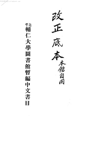 | 网盘路径:/时光图书馆珍藏系列/书籍文件/老图书/《辅仁大学图书馆暂编中文书目》电子版合集.db | ||