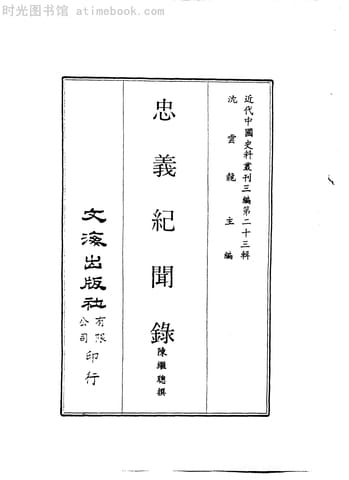 | 网盘路径:/时光图书馆珍藏系列/书籍文件/老图书/《近代中国史料丛刊三辑_忠义记闻录》电子版合集.db | ||