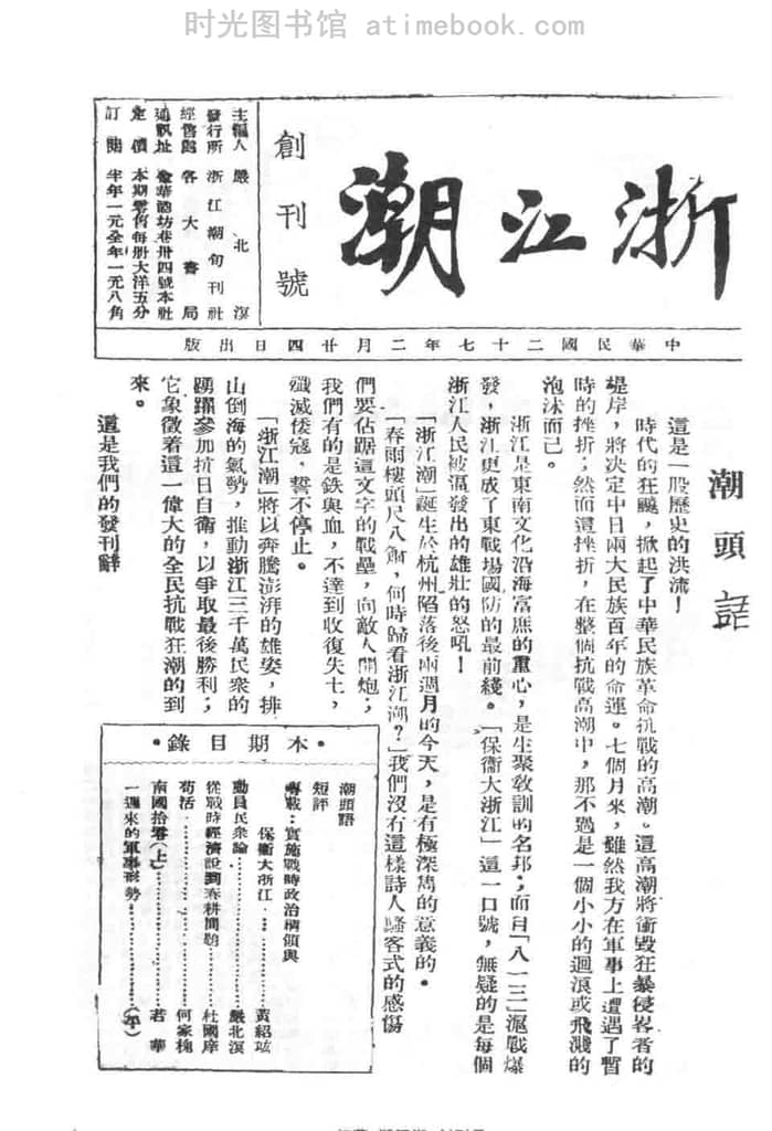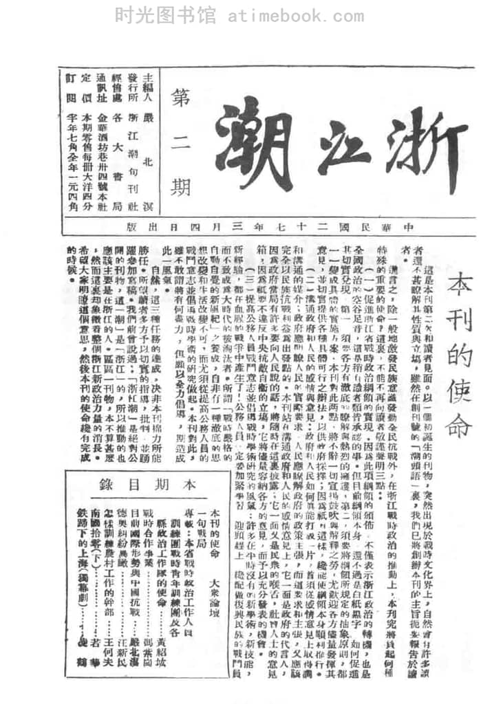 | 网盘路径:/时光图书馆珍藏系列/书籍文件/老杂志、老期刊/民国期刊/浙江/《浙江潮》(金华)1938-1944年合集.db | ||