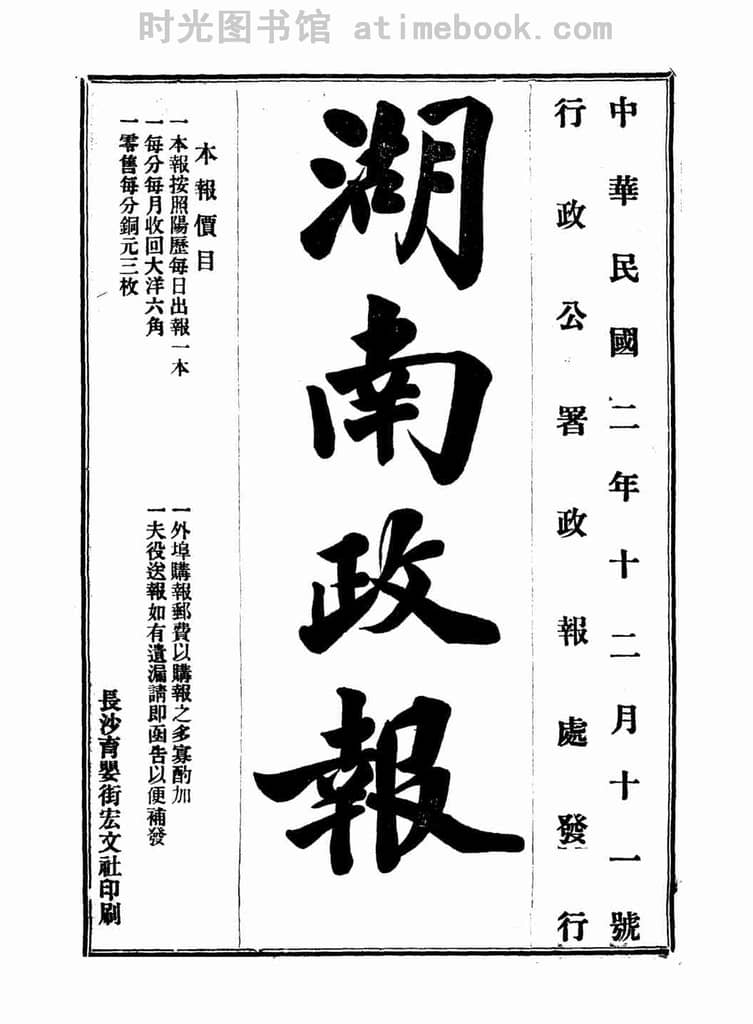 网盘路径:/时光图书馆珍藏系列/书籍文件/老报纸/湖南/《湖南政报》(长沙)1913-1925年合集.db