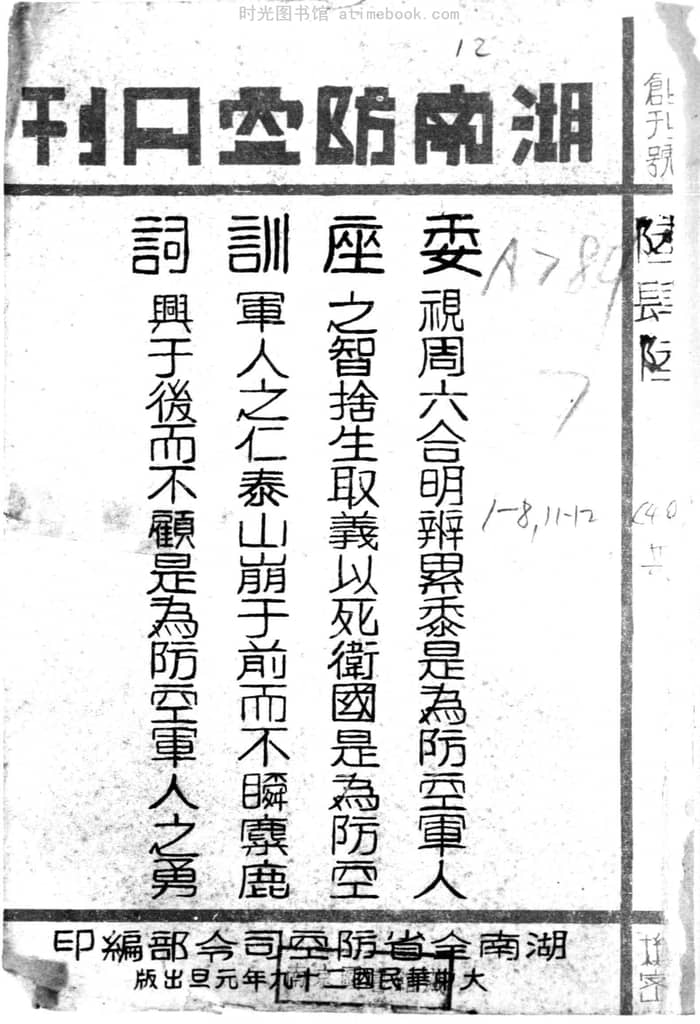 文件下载 | 名称:《湖南防空月刊》(湖南)1940-1940年合集 | |