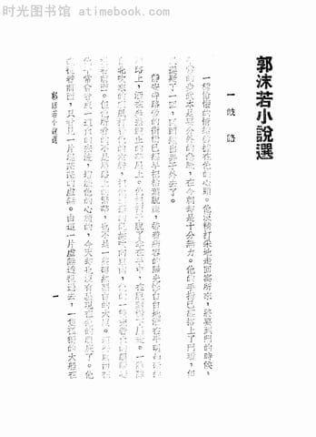 | 网盘路径:/时光图书馆珍藏系列/书籍文件/老图书/《郭沫若小说选》电子版合集.db | ||