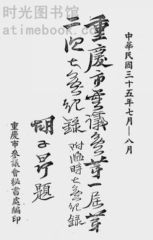 | 网盘路径:/时光图书馆珍藏系列/书籍文件/老图书/《重庆市参议会第一届第二次大会纪录》电子版合集.db | ||