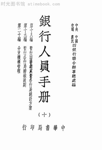 | 网盘路径:/时光图书馆珍藏系列/书籍文件/老图书/《银行人员手册(第十册)》电子版合集.db | ||