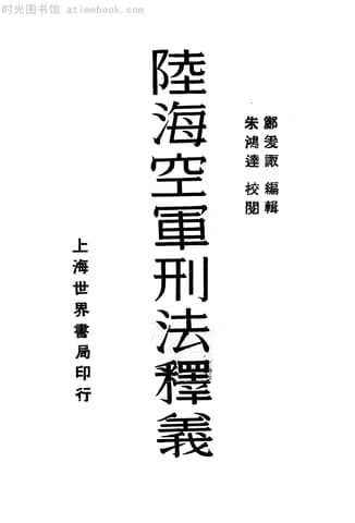 | 网盘路径:/时光图书馆珍藏系列/书籍文件/老图书/《陆海空军刑法释义》电子版合集.db | ||