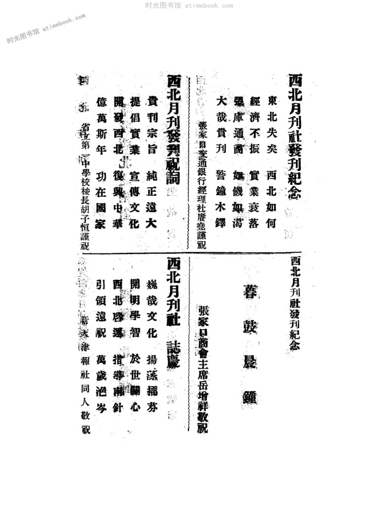 | 网盘路径:/时光图书馆珍藏系列/书籍文件/老杂志、老期刊/《西北月刊》1933-1934年合集.db | ||