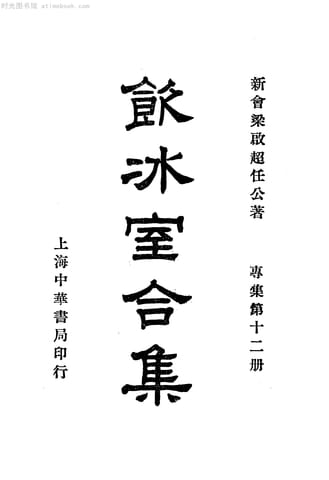 | 网盘路径:/时光图书馆珍藏系列/书籍文件/老图书/《饮冰室合集_专集第12册》电子版合集.db | ||