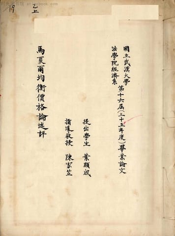 | 网盘路径:/时光图书馆珍藏系列/书籍文件/老图书/《马夏尔均衡价格论述评》电子版合集.db | ||