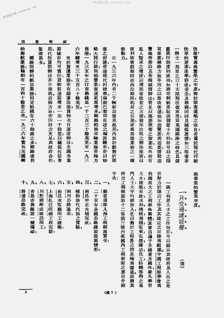 | 网盘路径:/时光图书馆珍藏系列/书籍文件/老杂志、老期刊/《交通月刊》1937-1941年合集.db | ||
