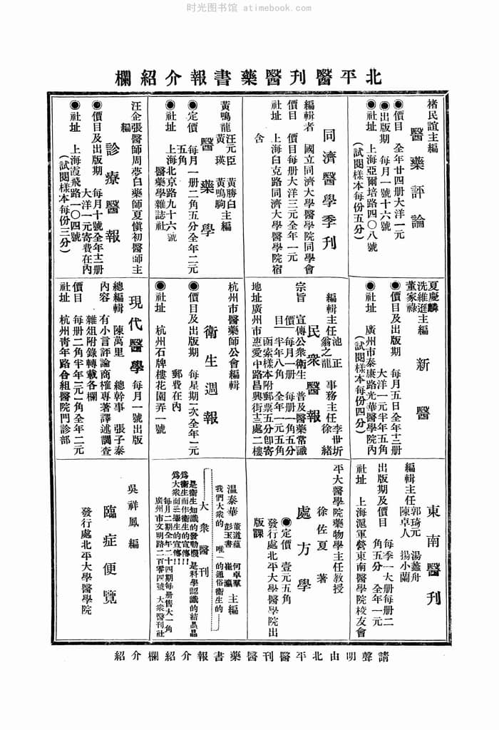 | 网盘路径:/时光图书馆珍藏系列/书籍文件/老杂志、老期刊/民国期刊/北京/《北平医刊》(北平)1933-1937年合集.db | ||