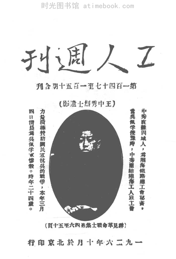 网盘路径:/时光图书馆珍藏系列/书籍文件/老杂志、老期刊/民国期刊/北京/《工人周刊》(北京)1926-1926年合集.db