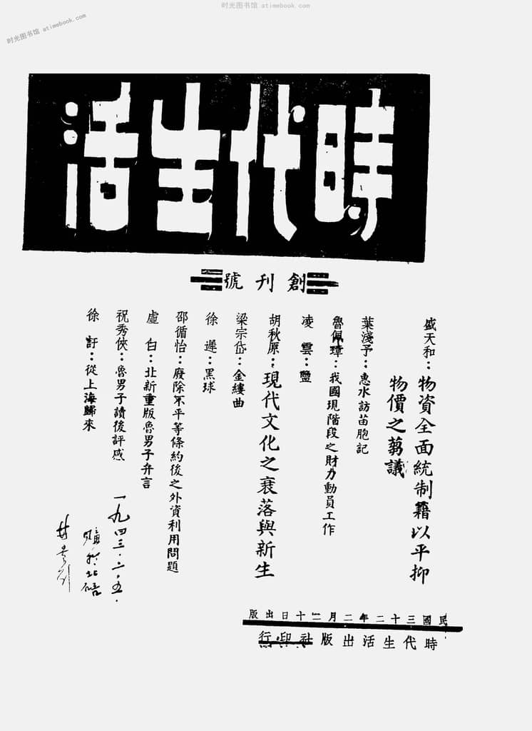 | 网盘路径:/时光图书馆珍藏系列/书籍文件/老杂志、老期刊/民国期刊/四川/《时代生活》(重庆)1943-1944年合集.db | ||