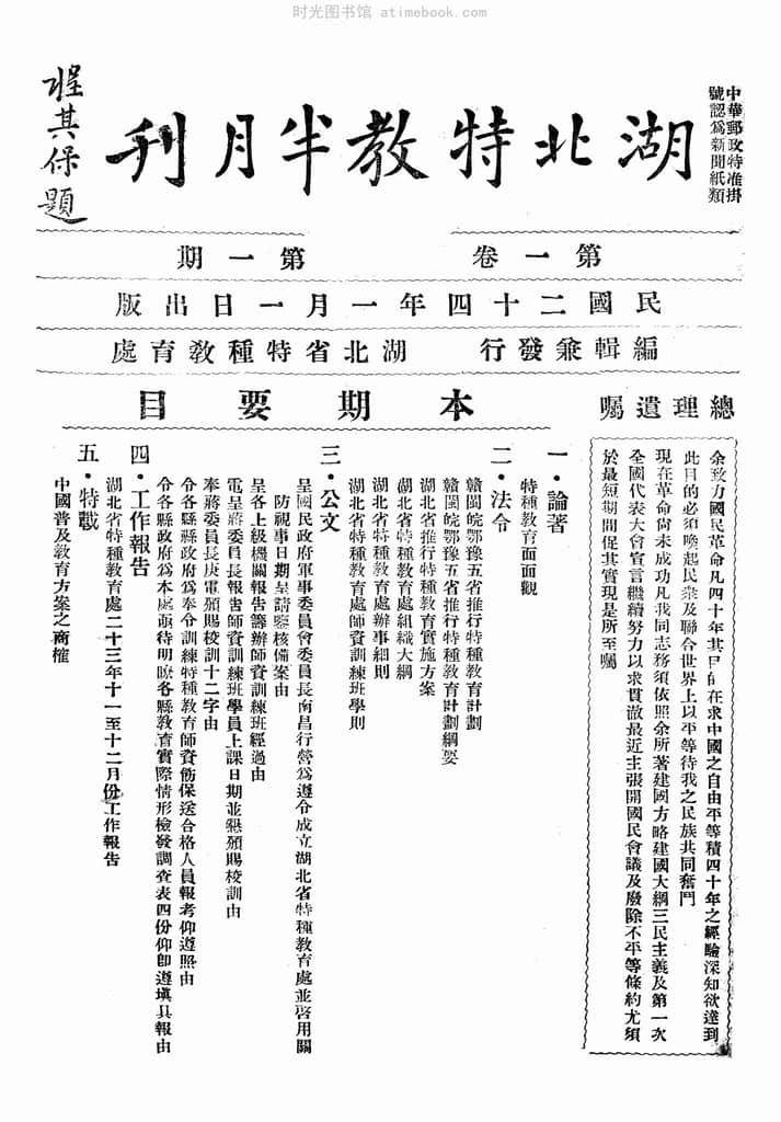 | 网盘路径:/时光图书馆珍藏系列/书籍文件/老杂志、老期刊/民国期刊/湖北/《湖北特教半月刊》(湖北)1935-1935年合集.db | ||