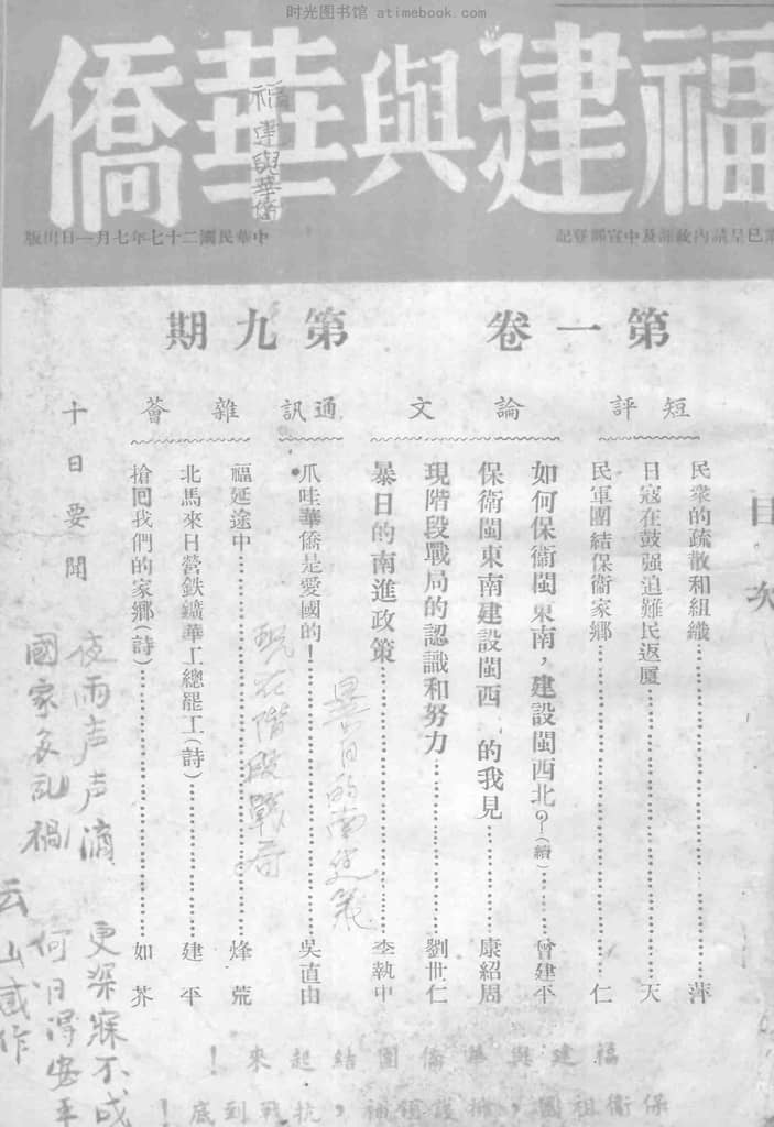 | 网盘路径:/时光图书馆珍藏系列/书籍文件/老杂志、老期刊/民国期刊/福建/《福建与华侨》(福州)1938-1938年合集.db | ||