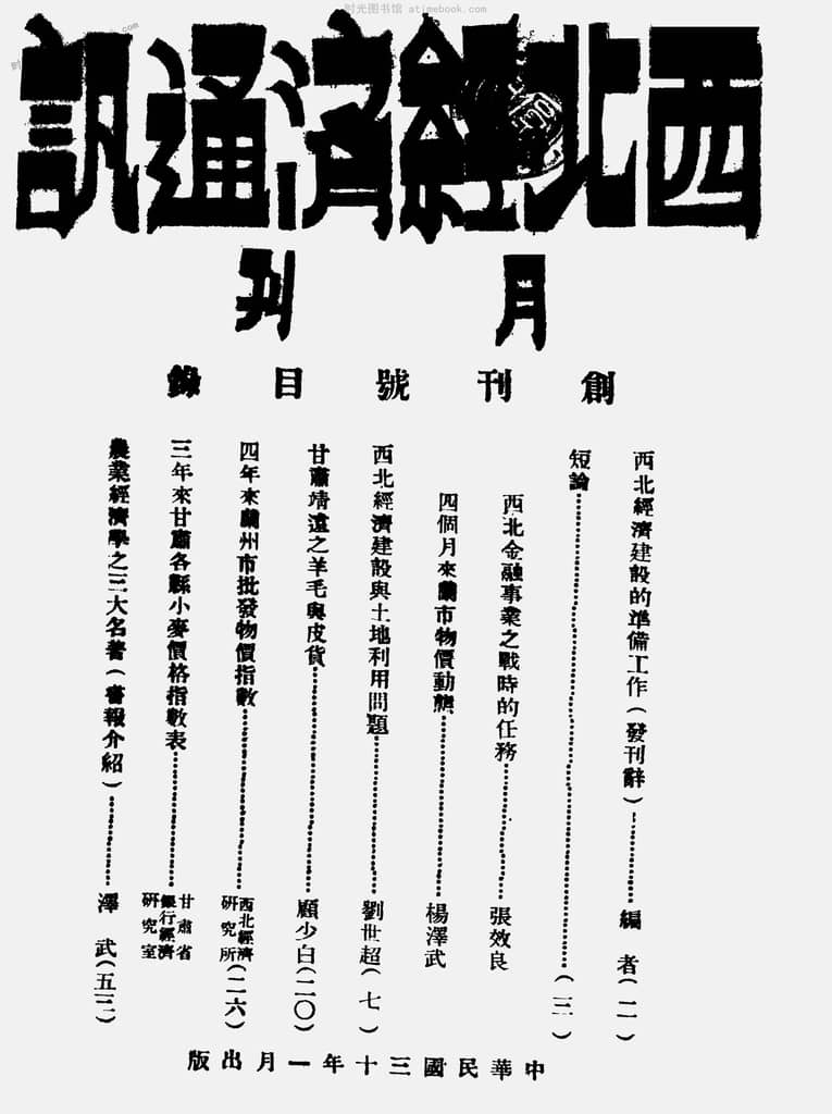 | 网盘路径:/时光图书馆珍藏系列/书籍文件/老杂志、老期刊/民国期刊/四川/《西北经济通讯》(重庆)1941-1942年合集.db | ||