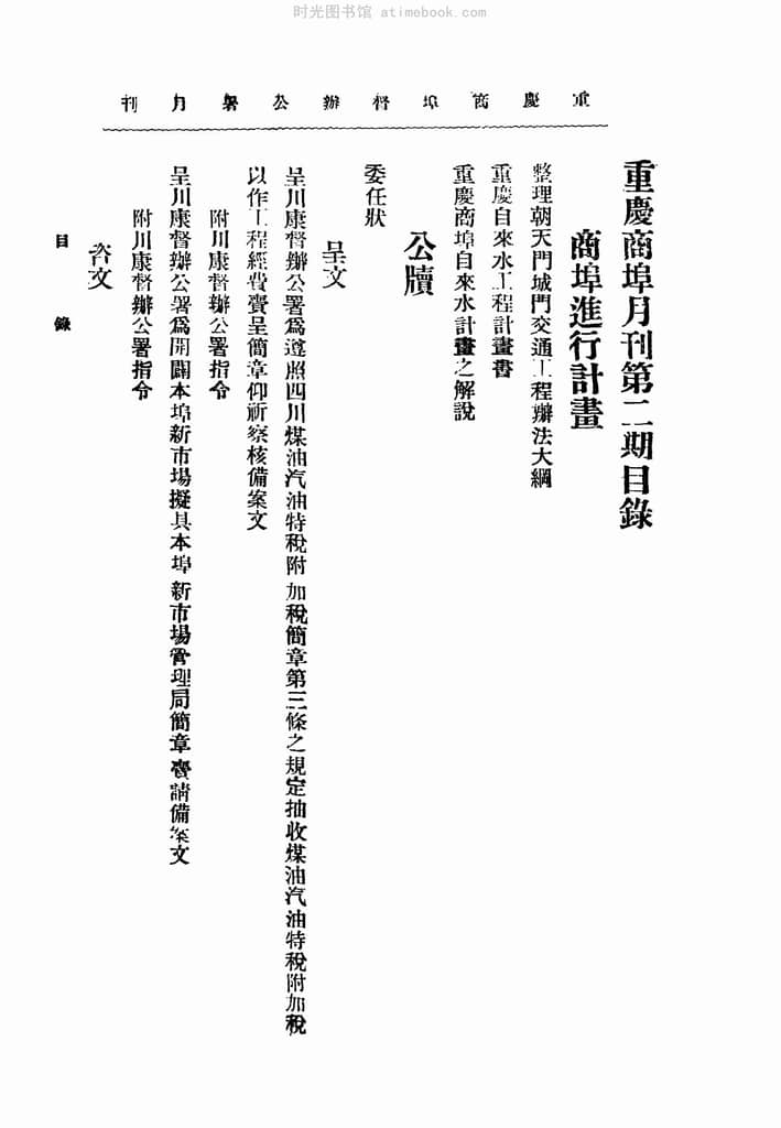 | 网盘路径:/时光图书馆珍藏系列/书籍文件/老杂志、老期刊/民国期刊/四川/《重庆商埠月刊》(重庆)1927-1927年合集.db | ||