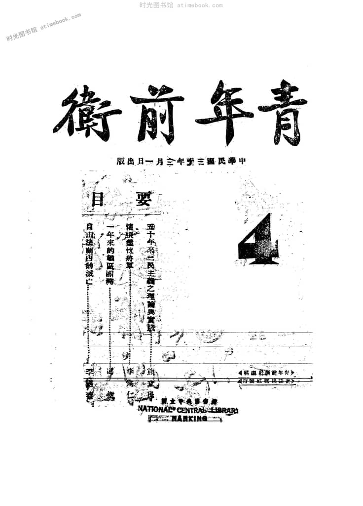 网盘路径:/时光图书馆珍藏系列/书籍文件/老杂志、老期刊/《青年前卫》1940-1943年合集.db