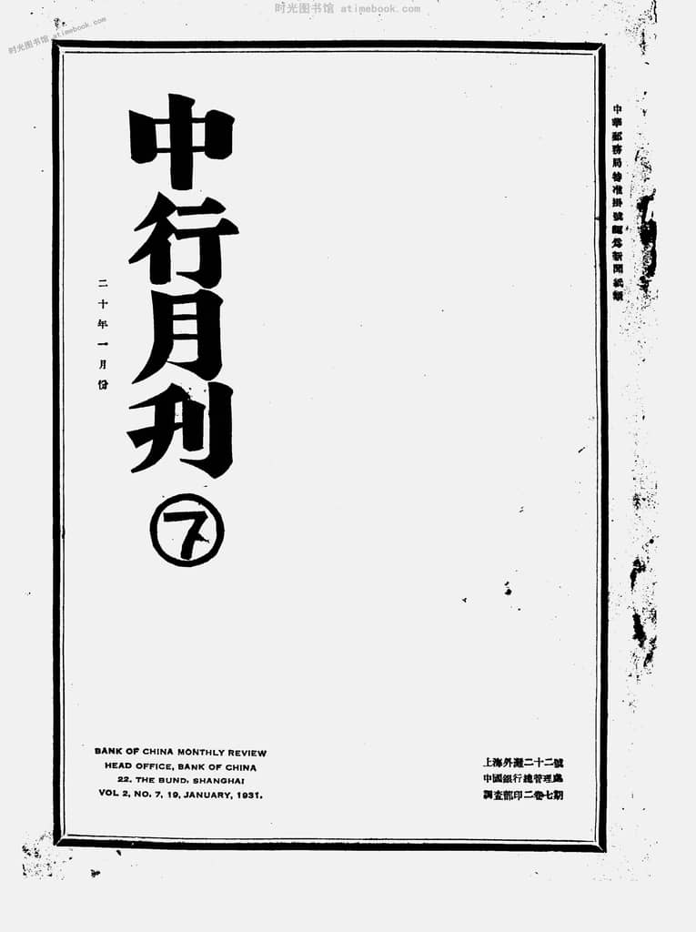 | 网盘路径:/时光图书馆珍藏系列/书籍文件/老杂志、老期刊/民国期刊/上海/《中行月刊》(上海)1931-1937年合集.db | ||