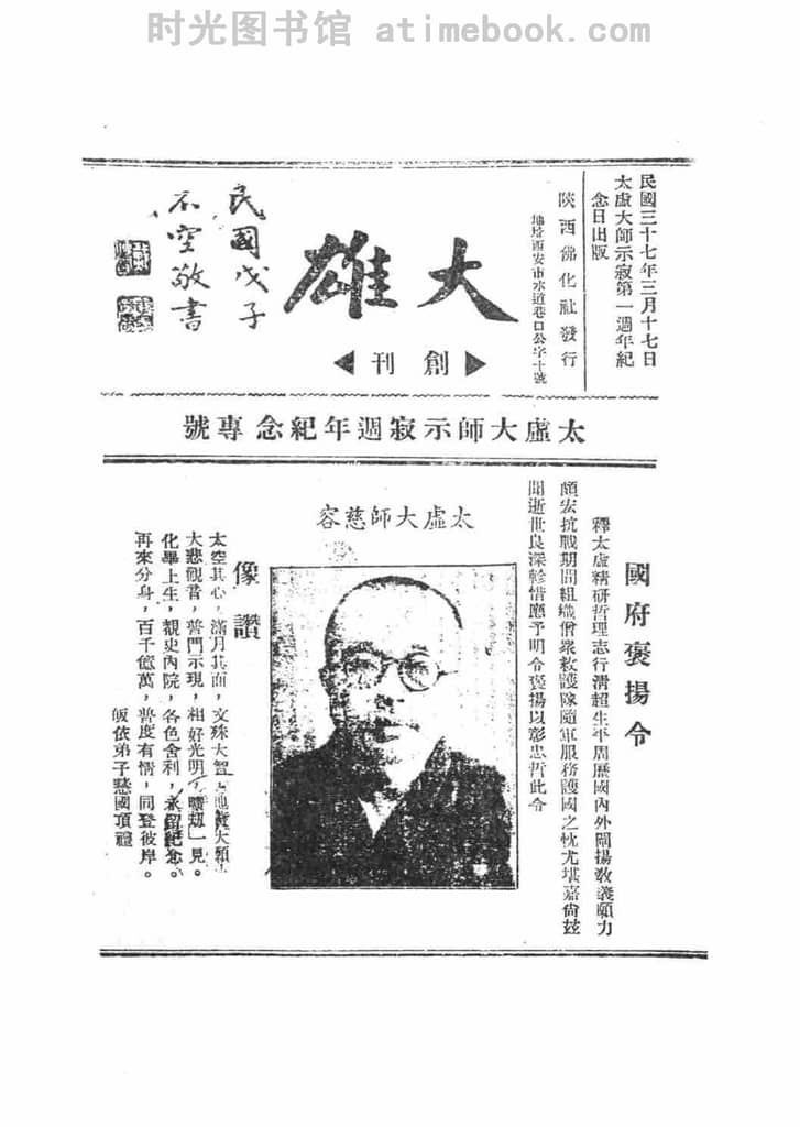 | 网盘路径:/时光图书馆珍藏系列/书籍文件/老杂志、老期刊/民国期刊/陕西/《大雄》(西安)1948-1948年合集.db | ||