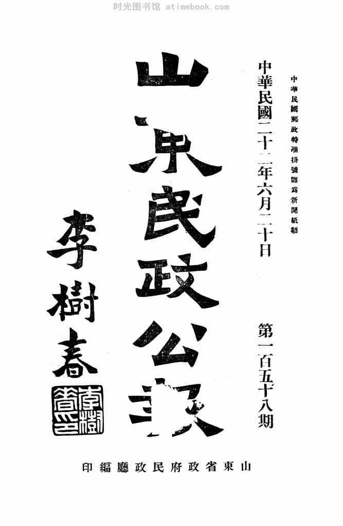 | 网盘路径:/时光图书馆珍藏系列/书籍文件/老报纸/山东/《山东民政公报》(济南)1933-1934年合集.db | ||