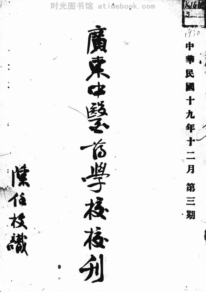 | 网盘路径:/时光图书馆珍藏系列/书籍文件/老杂志、老期刊/民国期刊/广东/《广东中医药学校》(广东)1930-1933年合集.db | ||