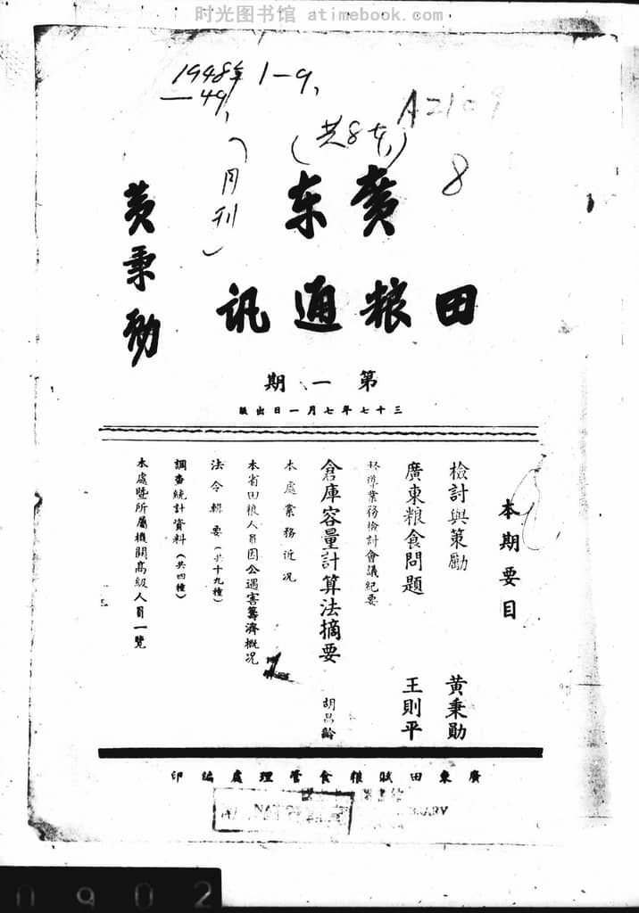 | 网盘路径:/时光图书馆珍藏系列/书籍文件/老杂志、老期刊/民国期刊/广东/《广东田粮通讯》(广州)1948-1949年合集.db | ||