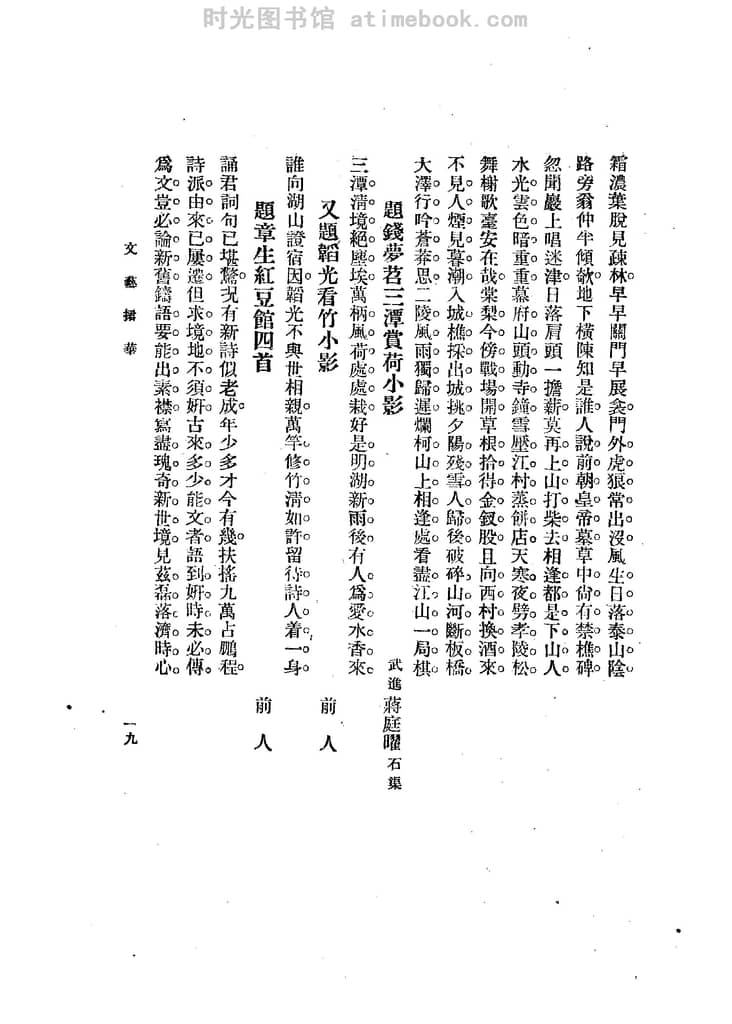| 网盘路径:/时光图书馆珍藏系列/书籍文件/老杂志、老期刊/民国期刊/江苏/《文艺捃华》(苏州(江苏))1934-1936年合集.db | ||