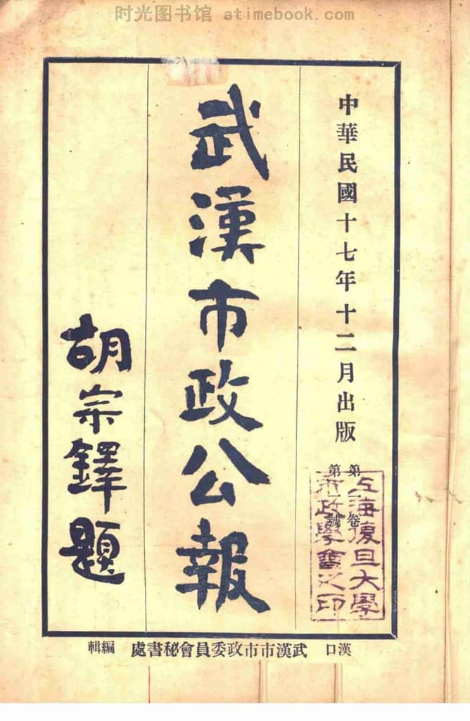 网盘路径:/时光图书馆珍藏系列/书籍文件/老报纸/湖北/《武汉市政公报》(汉口)1928-1929年合集.db