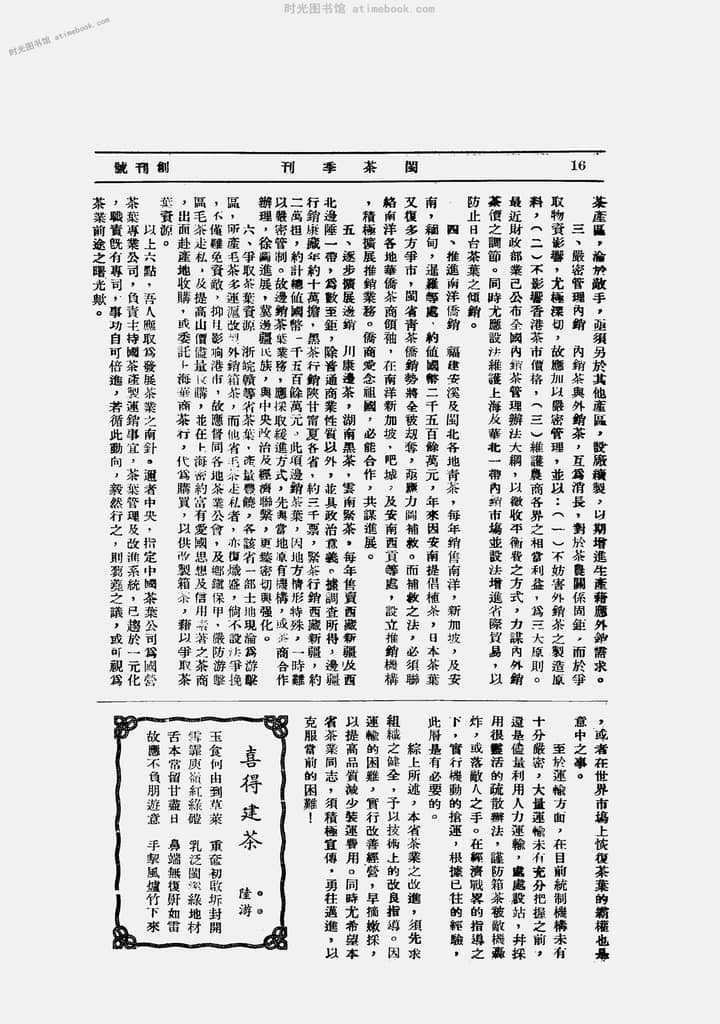 | 网盘路径:/时光图书馆珍藏系列/书籍文件/老杂志、老期刊/《闽茶季刊》1940-1940年合集.db | ||