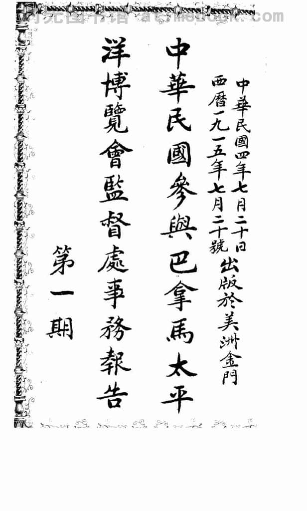 网盘路径:/时光图书馆珍藏系列/书籍文件/老杂志、老期刊/《中华民国参与巴拿马太平洋博览会监督处事务报告》(金门(美))1915-1915年合集.db