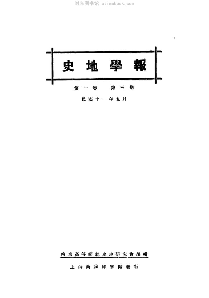 网盘路径:/时光图书馆珍藏系列/书籍文件/老报纸/江苏/《史地学报》(南京)1922-1924年合集.db
