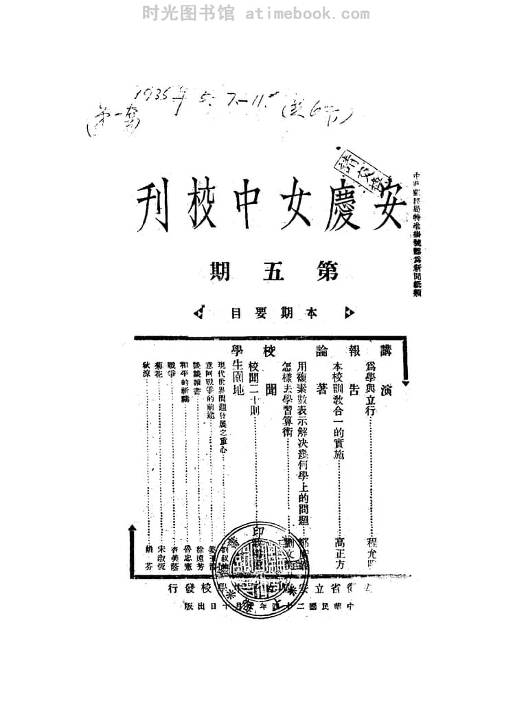 网盘路径:/时光图书馆珍藏系列/书籍文件/老杂志、老期刊/民国期刊/安徽/《安庆女中校刊》(安徽)1935-1937年合集.db
