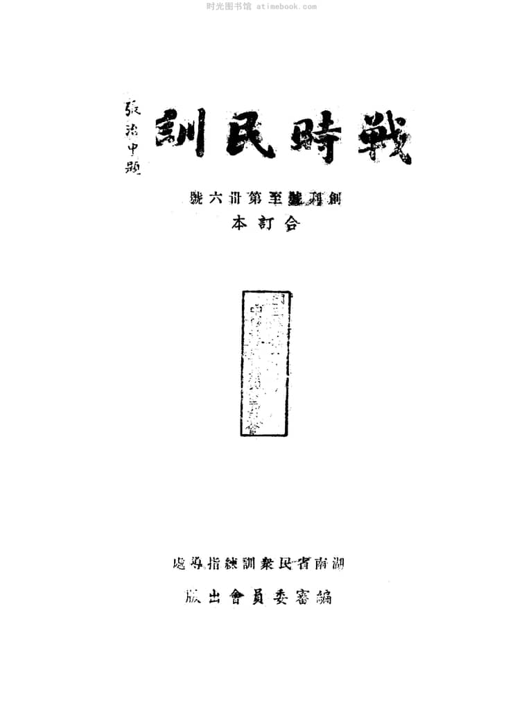 网盘路径:/时光图书馆珍藏系列/书籍文件/老杂志、老期刊/民国期刊/湖南/《战时民训》(长沙)1938-1938年合集.db