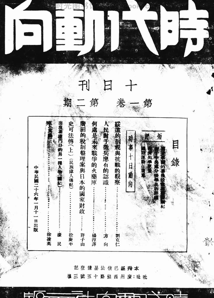 名称:《时代动向》(广州)1937-1938年合集