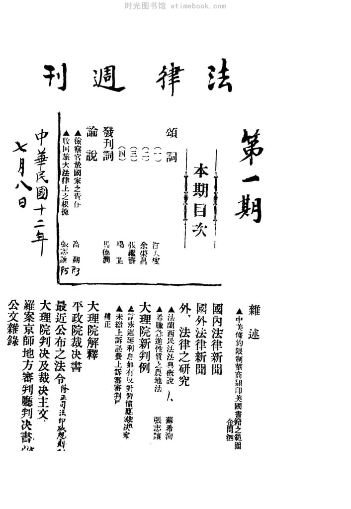 | 网盘路径:/时光图书馆珍藏系列/书籍文件/老杂志、老期刊/民国期刊/北京/《法律周刊》(北京)1913-1924年合集.db | ||
